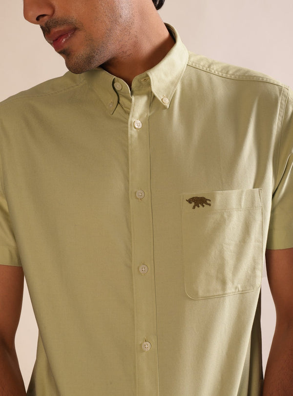 This shirt is meticulously crafted from cotton in a plain weave, ensuring comfort and breathability. Designed in a half-sleeve silhouette, it not only provides sophistication but also features a button-down collar, & Rajan, the mark of Andamen.