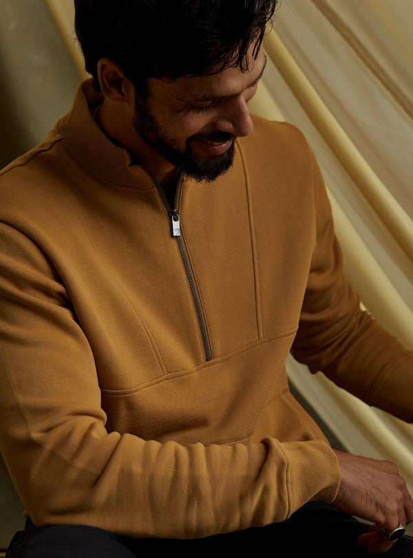 Named after the Jim Corbett National Park, renowned for its population of Tigers, this Escape garment takes inspiration from the park's tiger density. This Mustard Pullover is crafted from a blend of cotton, ensuring your garment is as comfortable as it is resilient. Field-tested & perfect for your safari expedition, it features a sublime finish & a terry zipper.