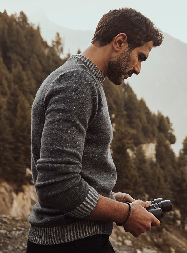 Feast your eyes on some of the toughest styles in our arsenal yet. Built entirely from cotton, this heavy-duty style is built to weather any storm. Showcases hyper-textures that enhance garment stretch, assist in thermoregulation, & add a lot of character to your pullover. Tested to its limits, this piece will withstand time, lasting for years to come. Features melange yarn, & Rajan, the mark of Andamen.