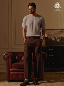 This crew neck is as comfortable as it is sophisticated. The rich, super silky fabric ensures optimal thermal regulation, & the craftsmanship is truly exceptional. This is a classic piece and great value considering it'll endure in your wardrobe for years to come. Think of styling it with our toasted almond chino or a suit for a cocktail party. Features tipping detail.