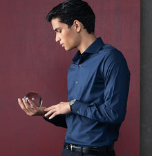 The easiest way to dress up for a formal evening is by adding a royal navy addition to your wardrobe. We've added a 3% lycra shirt for effortless movement and a more flattering fit. If you are the guy who wishes for a comfortable fit under a suit (as comfy as wearing a tee with suit) or is craving for some breathable, uber comfortable shirt to beat the summer heat, then this is one of your best bets.