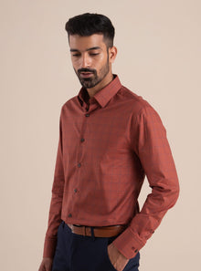 Close your eyes & pick this shirt for any evening you have to go out for. It has a beautiful rust & navy palette which works well for special ocassions & festivals. Features a concealed button-down collar & insignia embroidery on cuffs. The look is sharp, young & understated. It has the perfect balance of a wearable classic just standing out. Part of Andamen's 'Air Twill 95' range of shirts.