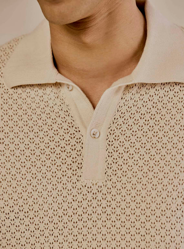 This style features a pointelle knit— delicate, openwork designs created using intricate knitting techniques. These patterns often form small, decorative holes or eyelets, adding texture, depth and breathability to the garment.