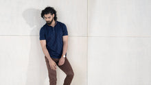 A textured grid in navy. Experience one of the most unique constructions - a luxurious jacquard where the threads have been dyed (unlike a print) at the yarn stage. Made from the best cotton in the world, 100% certified supima cotton which gives the tee a superior, soft handfeel and lustre. This is a rare find, especially created for folks passionate about their style.