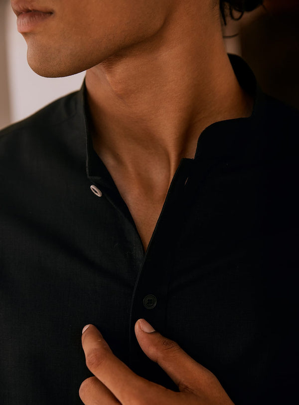 Presenting the Yaara Cotton Shirt, a contemporary style rooted in Indian heritage.Crafted from 100% rich Indian cotton, this black slub full-sleeve shirt is a must-have, igniting multiple styling opportunities. The intricate texture of the fabric enhances the classic black, making it the perfect choice when you want a traditional touch while sticking to shirts. The fine, loosely woven cotton, with its crimped texture, adds distinct character to each piece.Pair this shirt with linen pants for a refined and sophisticated look.Built on a legacy of excellence, each hand-crafted piece features minor variations in shade and texture, making it truly one-of-a-kind.Part of the MIRAI collection, where contemporary styling meets heritage fashion.