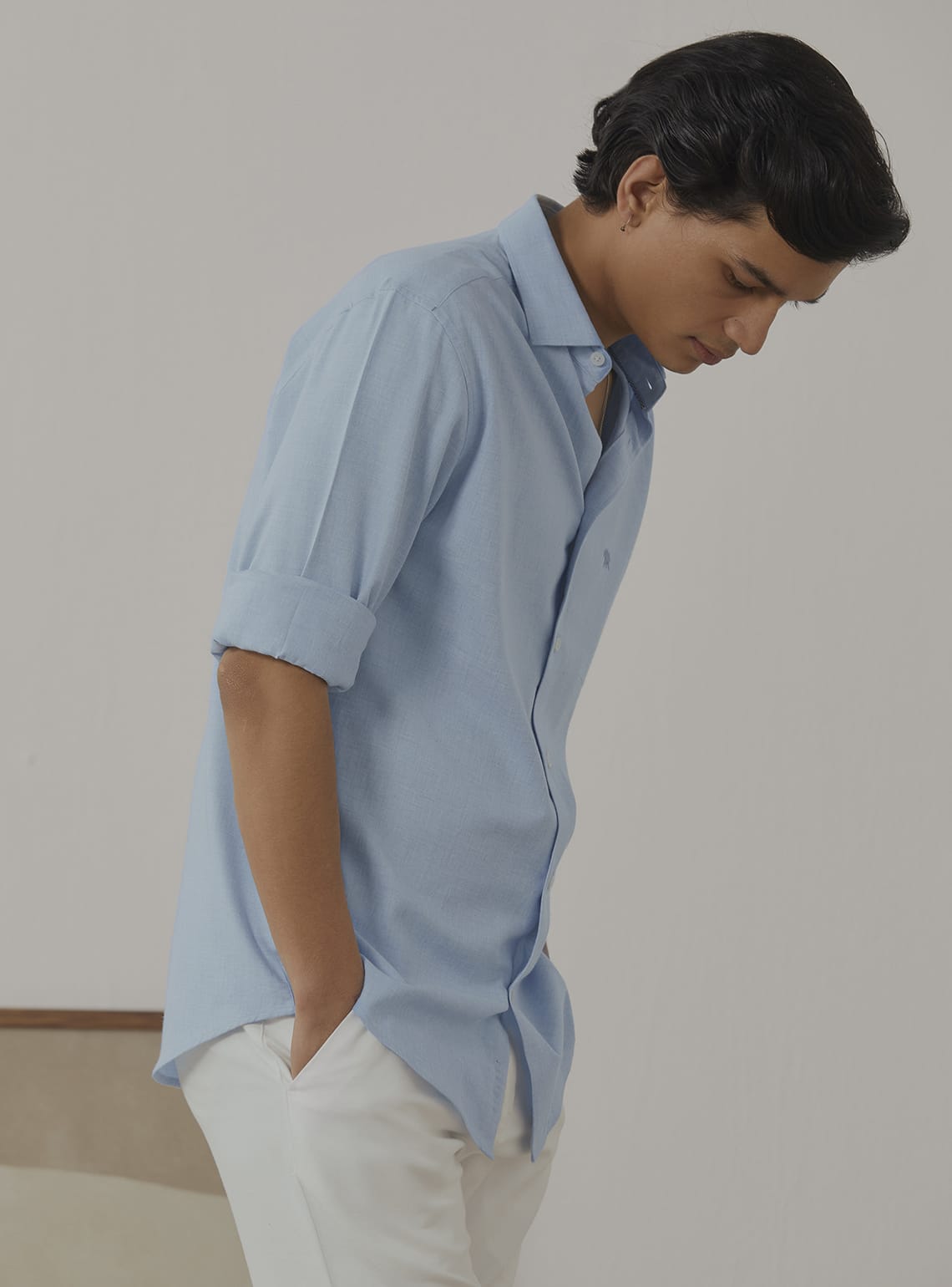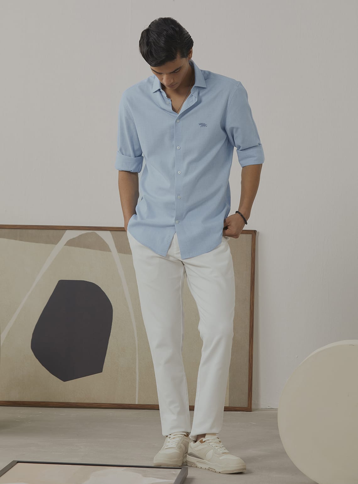 This shirt is meticulously crafted from cotton in a plain weave, ensuring comfort and breathability. Designed in a full-sleeve silhouette, it not only provides sophistication but also features melange yarn, & Rajan, the mark of Andamen.