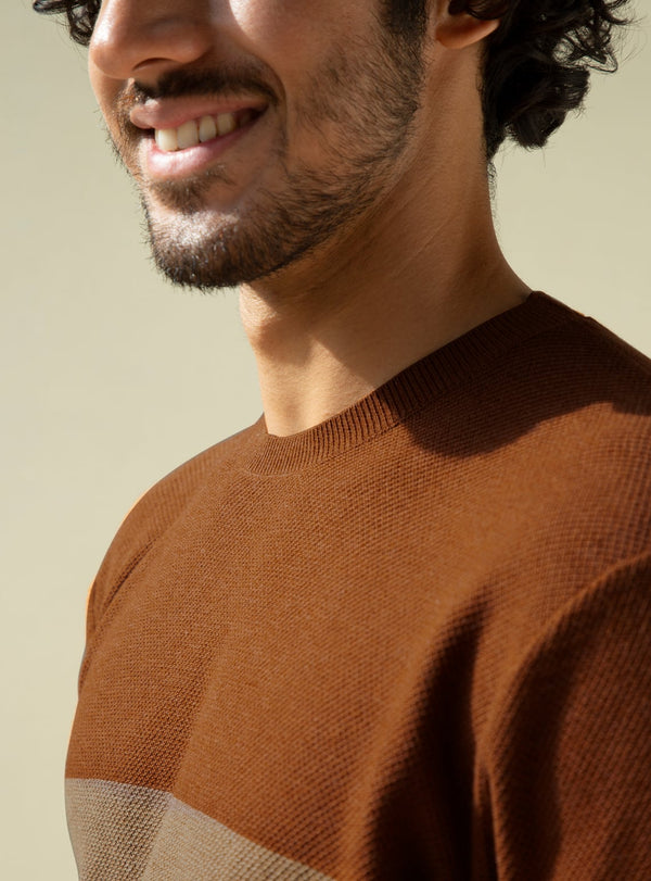 Cedar Tan Colour Block Crew