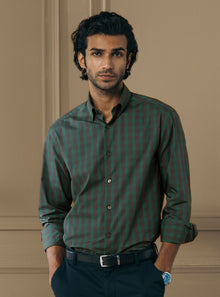 Our model is 6'2", chest 40 and is wearing a medium regular fit.