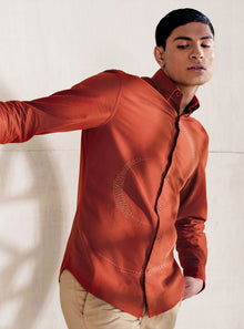 Rust men's casual Kantha shirt