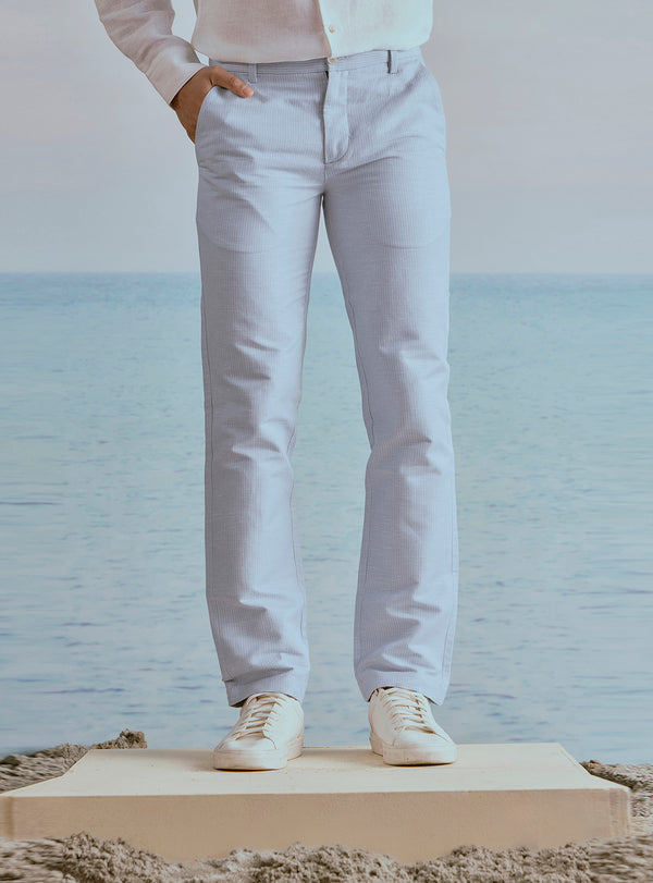 Current Blue Linen Stripe Trousers