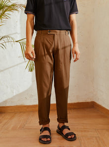 Presenting a light-weight pleated pant that weaves in style & comfort effortlessly. Crafted from Viscose-Cotton blend in a twill weave. The blended fabric makes the pants drape better & feel softer. These pants are double pleated, allowing for more breathing room around the thighs & feature an extended waistband.