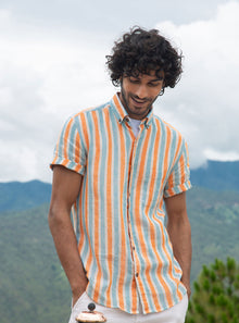 Tangerine Stripe Linen Half- Shirt