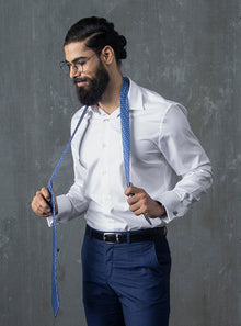 A white on white dobby is a classic business choice for guys who want something that is naturally resistant to wrinkling and looks great all day long. This is a strictly formal shirt French cuff shirt that won't let you down. The dobby gives the shirt additional texture and a beautiful depth.