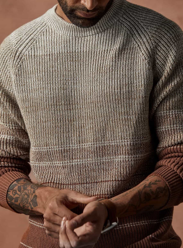 Feast your eyes on some of the toughest styles in our arsenal yet. Built entirely from cotton, this heavy-duty style is built to weather any storm. Showcases hyper-textures that enhance garment stretch, assist in thermoregulation, & add a lot of character to your pullover. Tested to its limits, this piece will withstand time, lasting for years to come. Features melange yarn, & Rajan, the mark of Andamen.