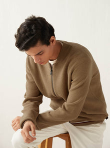 - 2x2 rib with contrast tipping at neck, sleeve cuff and bottom hem