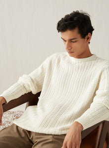 Our iconic pullovers are back for another season in a new avatar. Made entirely from a rich Indian cotton in a transfer rib weave pattern. The jersey structure makes the garment soft & gives it an enhanced stretch. Lighter than your usual pullover, this beautifully textured garment is weighty enough to keep you comfortable as the season transitions. Features rib knit on the neck, sleeve cuff & bottom hem.