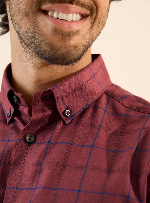 Timeless, incredibly soft & comfortable. Made in a Cotton-Polyester blend, this casual shirt is woven in a special melange yarn that results in a textured look & enhanced color depth. Features a button-down collar & Rajan, the mark of Andamen.
