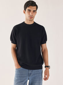 Woven from 100% Indian cotton of remarkable purity, this textured crew delivers understated refinement. Naturally soft and breathable, the fabric offers a smooth, enduring wear. It resists fraying, minimises creasing, and holds its colour over time.
