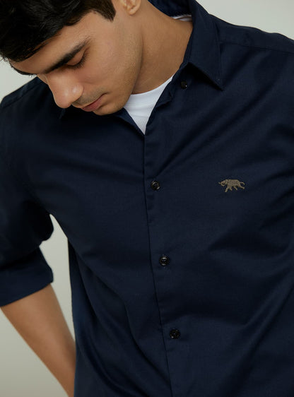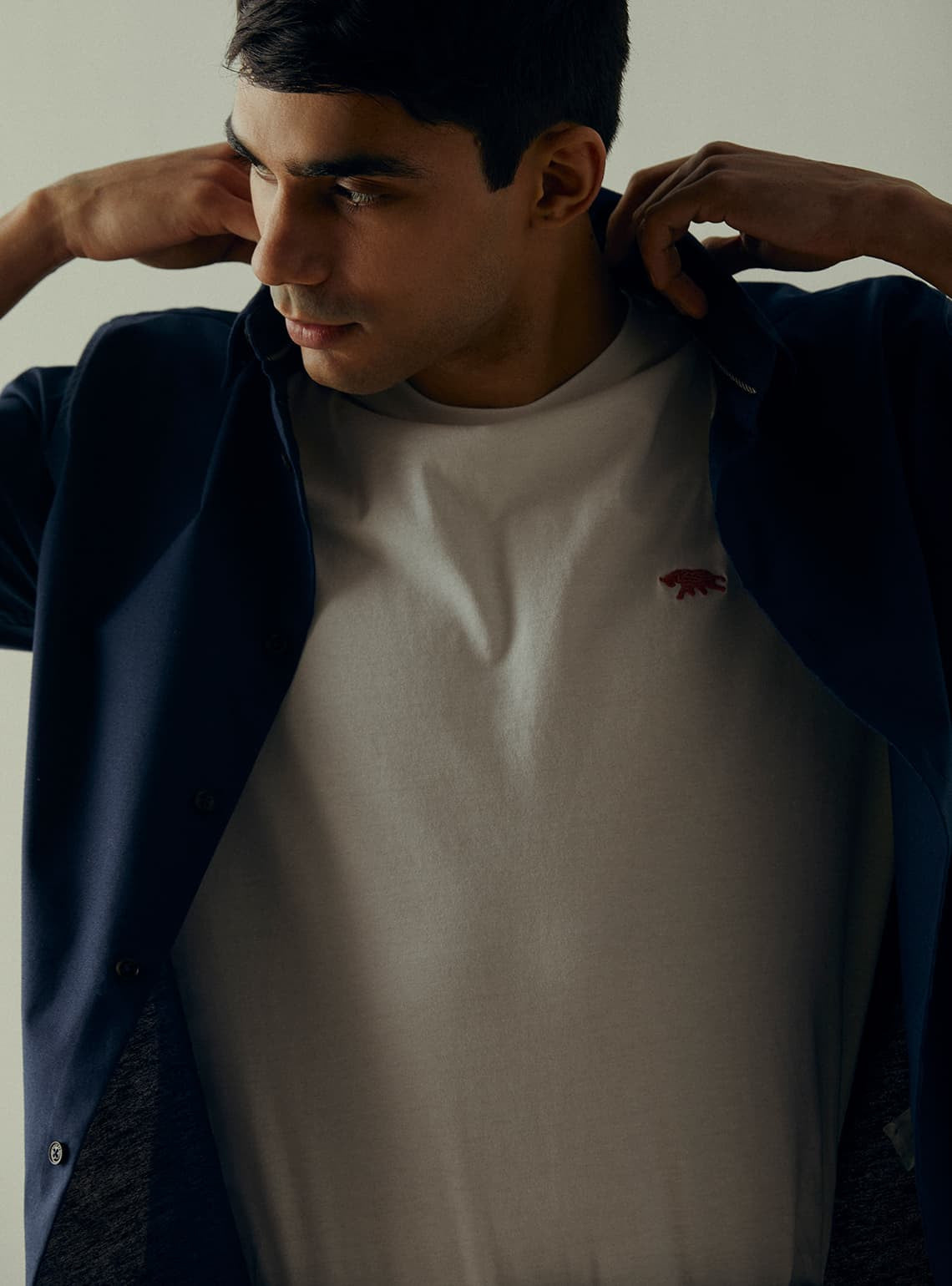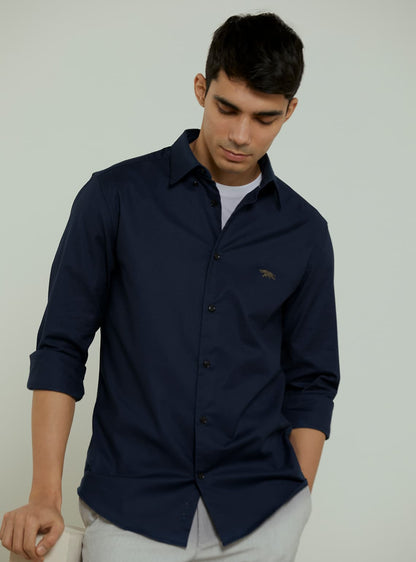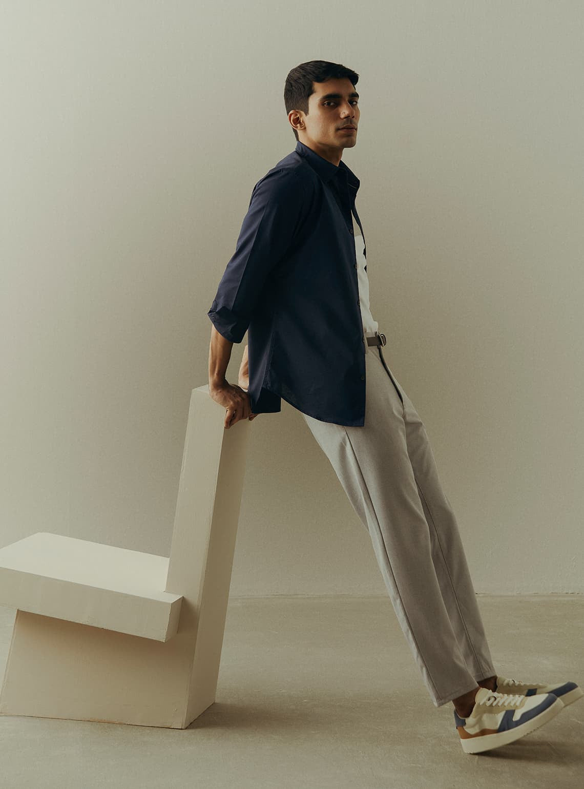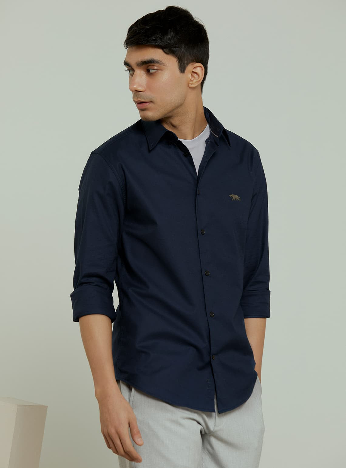 This shirt is meticulously crafted from a blend of rich Indian cotton in an Oxford weave, ensuring comfort and stretch. Designed in a full-sleeve silhouette, it not only provides sophistication but also features a button-down collar, & Rajan, the mark of Andamen.