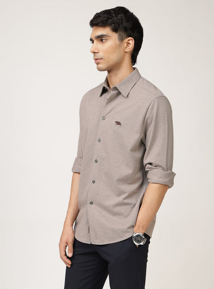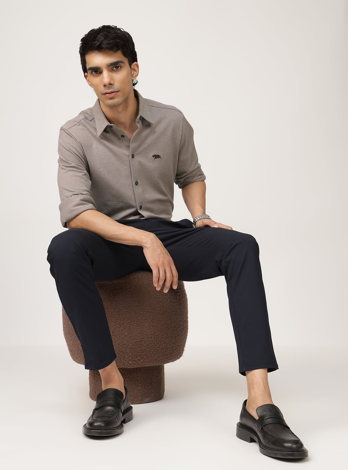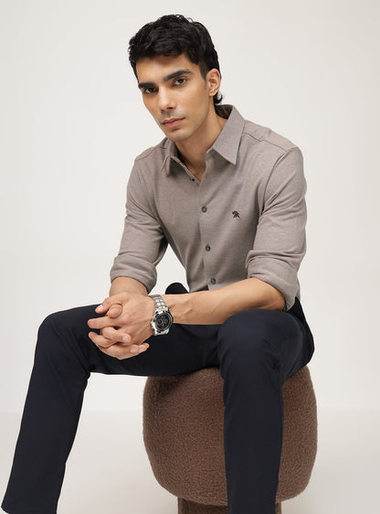 The cotton adds to the softness and the incredible hand-feel of the fabric while the elastane adds enhanced stretch & ensures ease of movement. The melange yarn results in a greater degree of colour richness & depth, adding a layer of sophistication to your look.