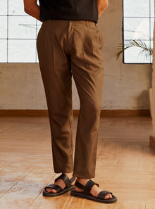 Presenting a light-weight pleated pant that weaves in style & comfort effortlessly. Crafted from Viscose-Cotton blend in a twill weave. The blended fabric makes the pants drape better & feel softer. These pants are double pleated, allowing for more breathing room around the thighs & feature an extended waistband.