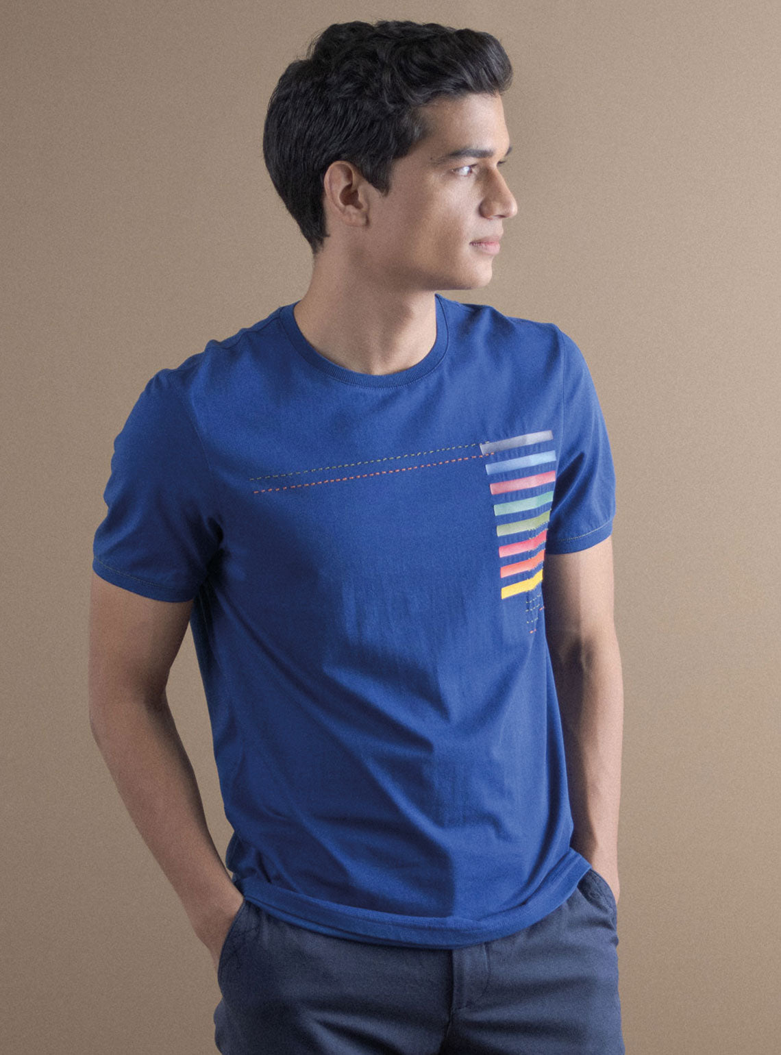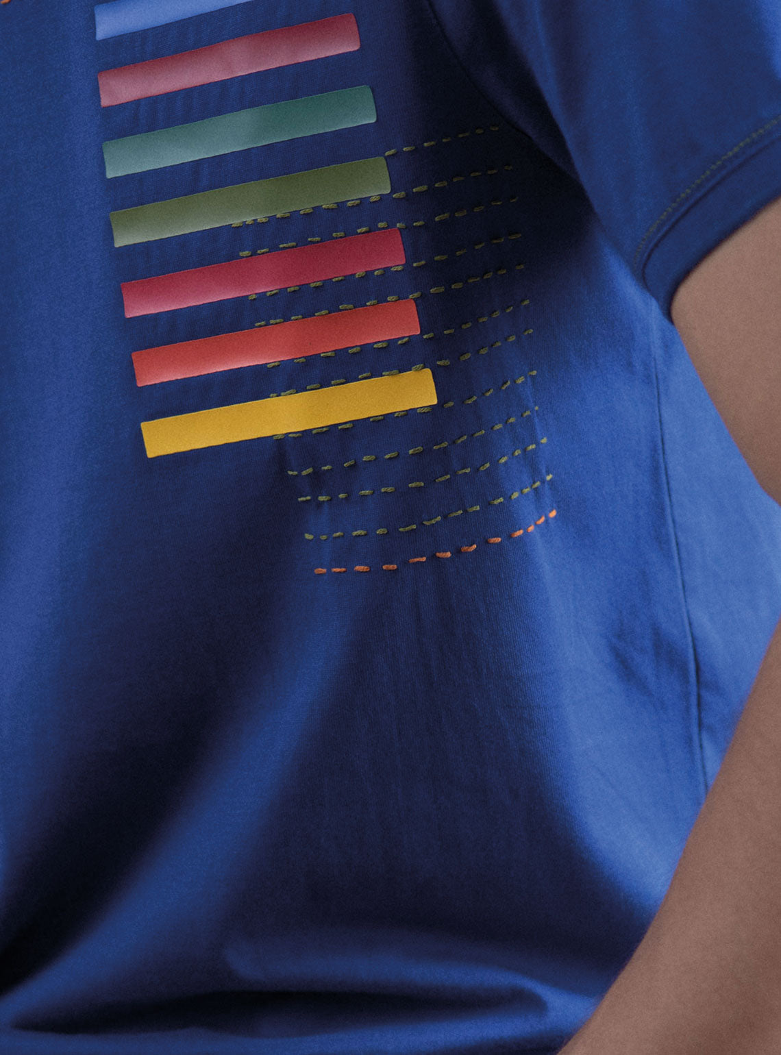 A superior jersey, precisely spun into a 24's single yarn for the perfect balance between lightness and the right weight that drapes luxuriously well. Masterfully embroidered with Kantha, one of the oldest forms of hand embroidery, originating from West Bengal.