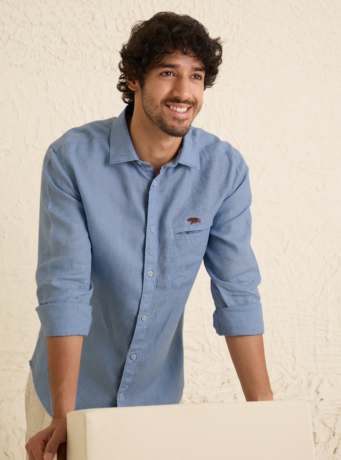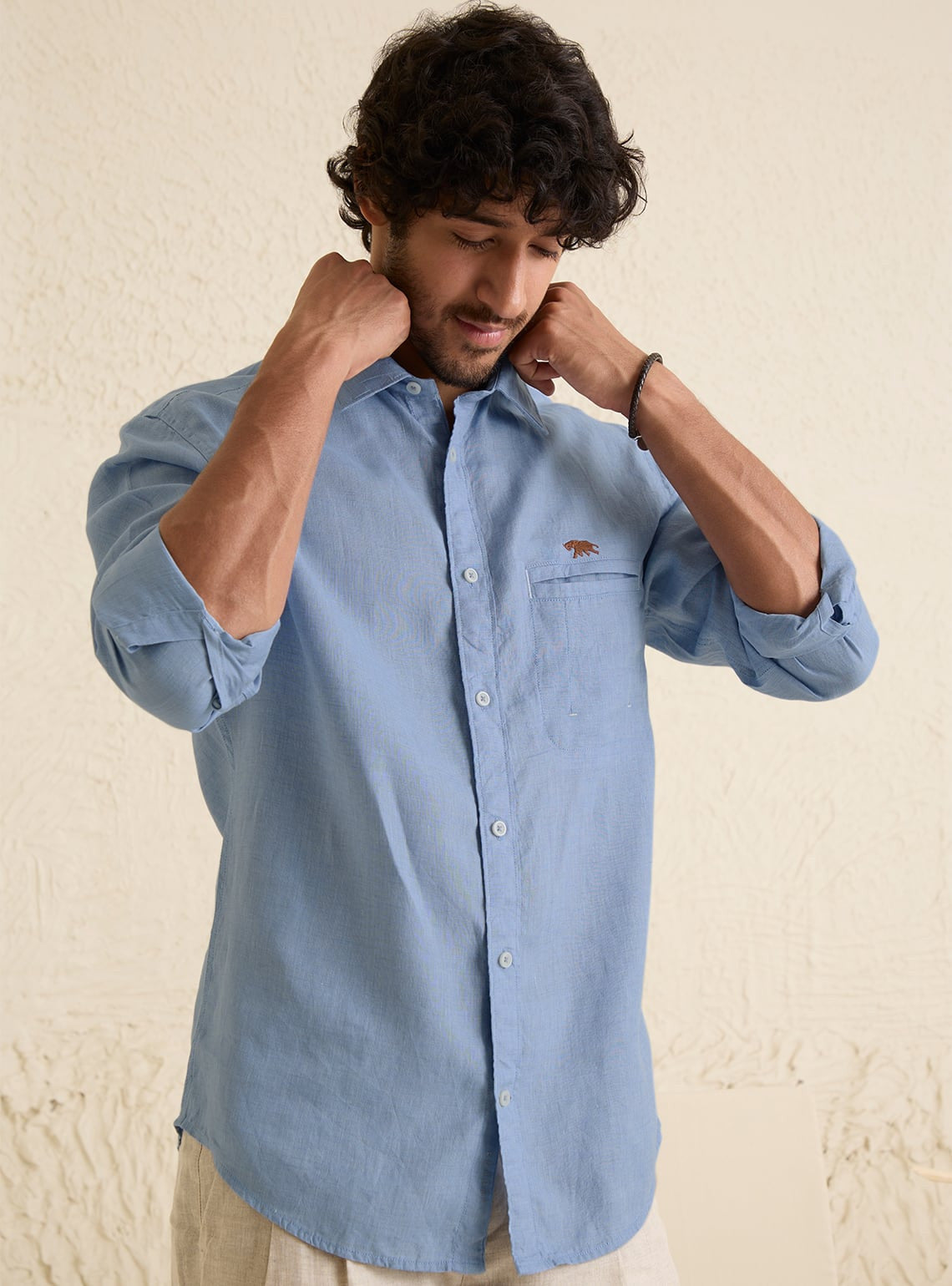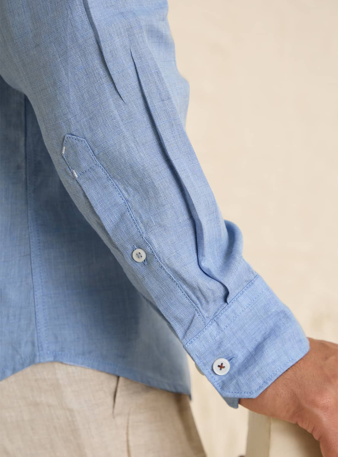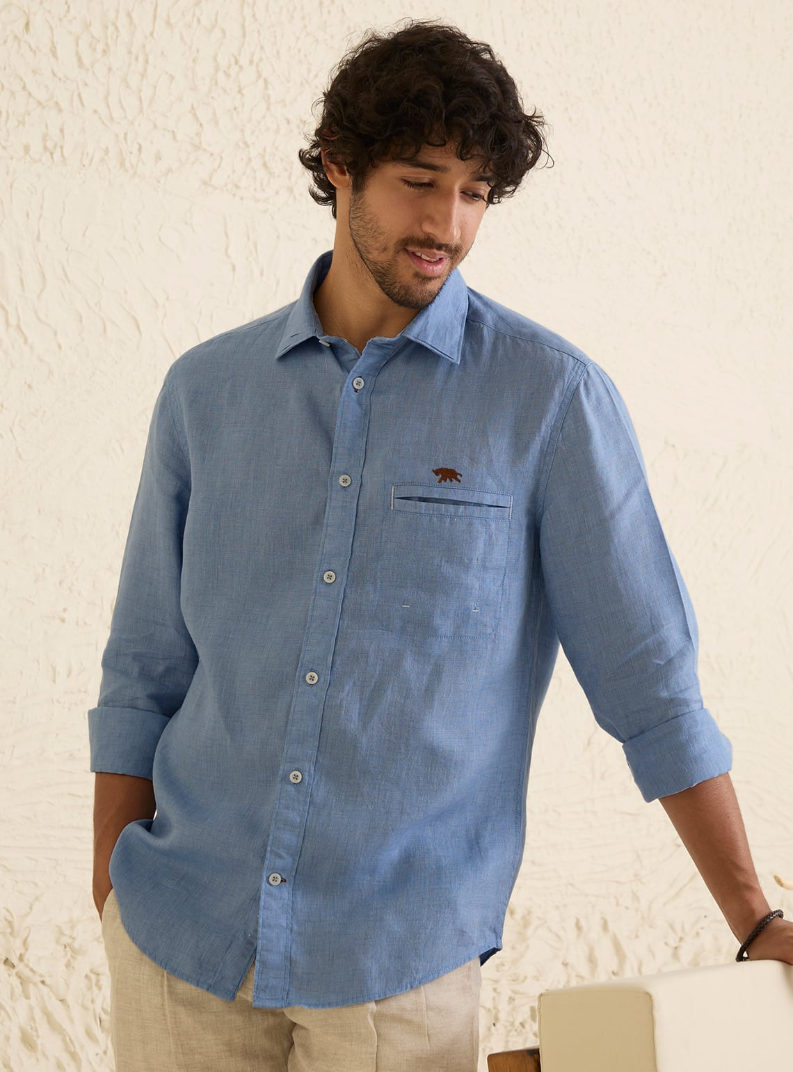 Timeless, soft to touch & naturally breathable. Our iconic linen shirts are back for another season. Crafted entirely from one of Earth's friendliest fibers, linen from European flax in a plain weave. Features a half cut-away collar, patch pockets & Rajan, the mark of Andamen.