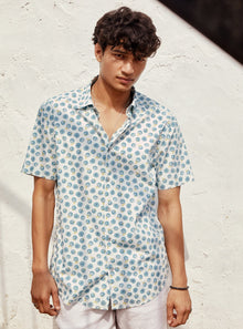 Inspired by Hawaiian prints, presenting a laidback yet fun short-sleeved shirt. Made entirely from a rich Indian cotton in a plain weave, this shirt is soft & lightweight. Features an all-over conversational print & a button-down collar.