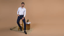 Elegant. Sharp. Contemporary. Here's a print shirt that will work very well as a business shirt as well as an evening, dress shirt. We've especially chosen a super fine twill that drapes well across the body, is soft to touch and has just the right pinch of lustre. Pair it with formal navy pants. Add the right finishing touches - a classic black belt, a black leather strap watch and formal lace shoes.