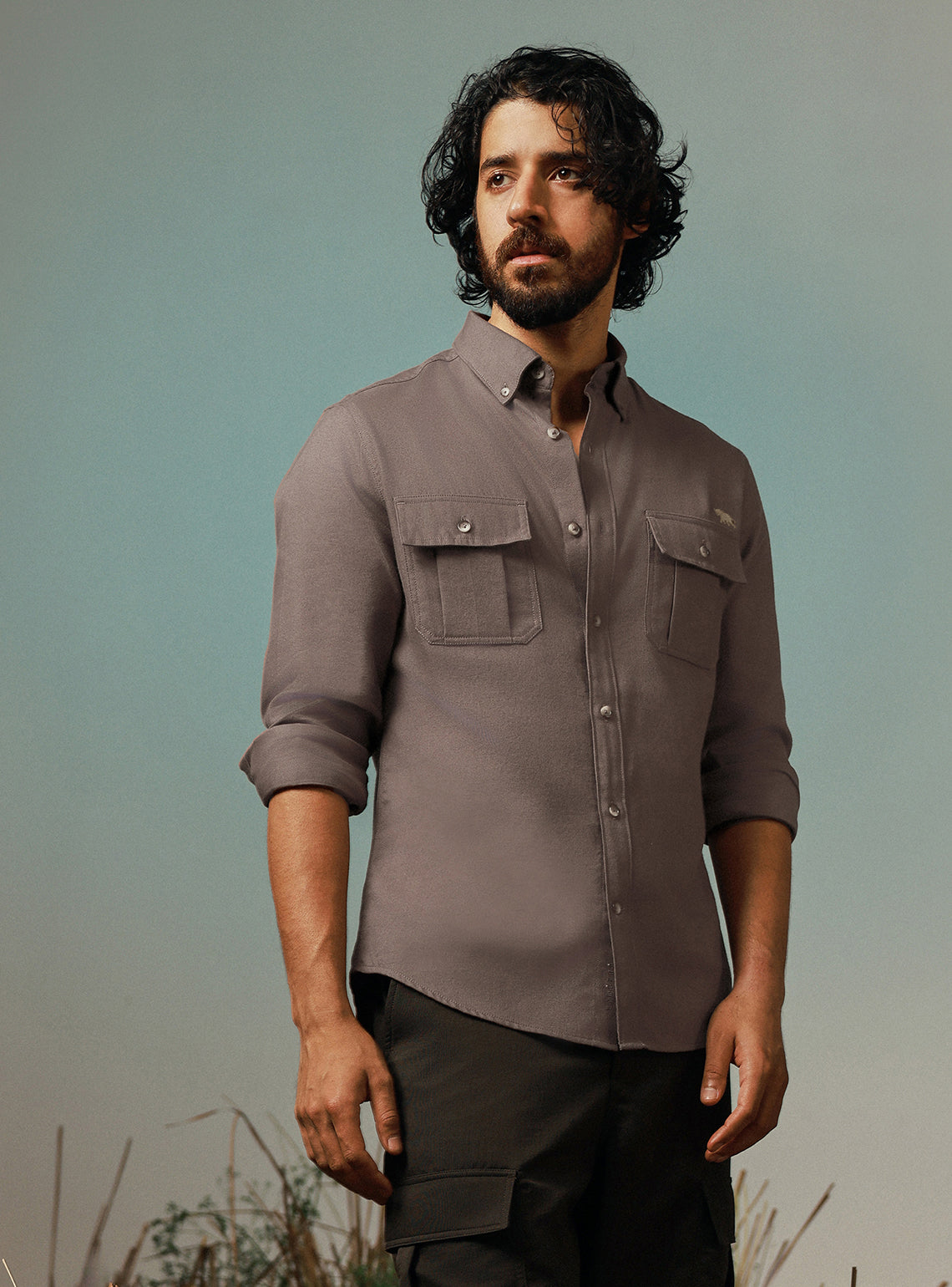 A rugged cotton twill shirt with a grounded brown tone and dependable structure. Double chest pockets bring everyday utility while the fit remains relaxed.