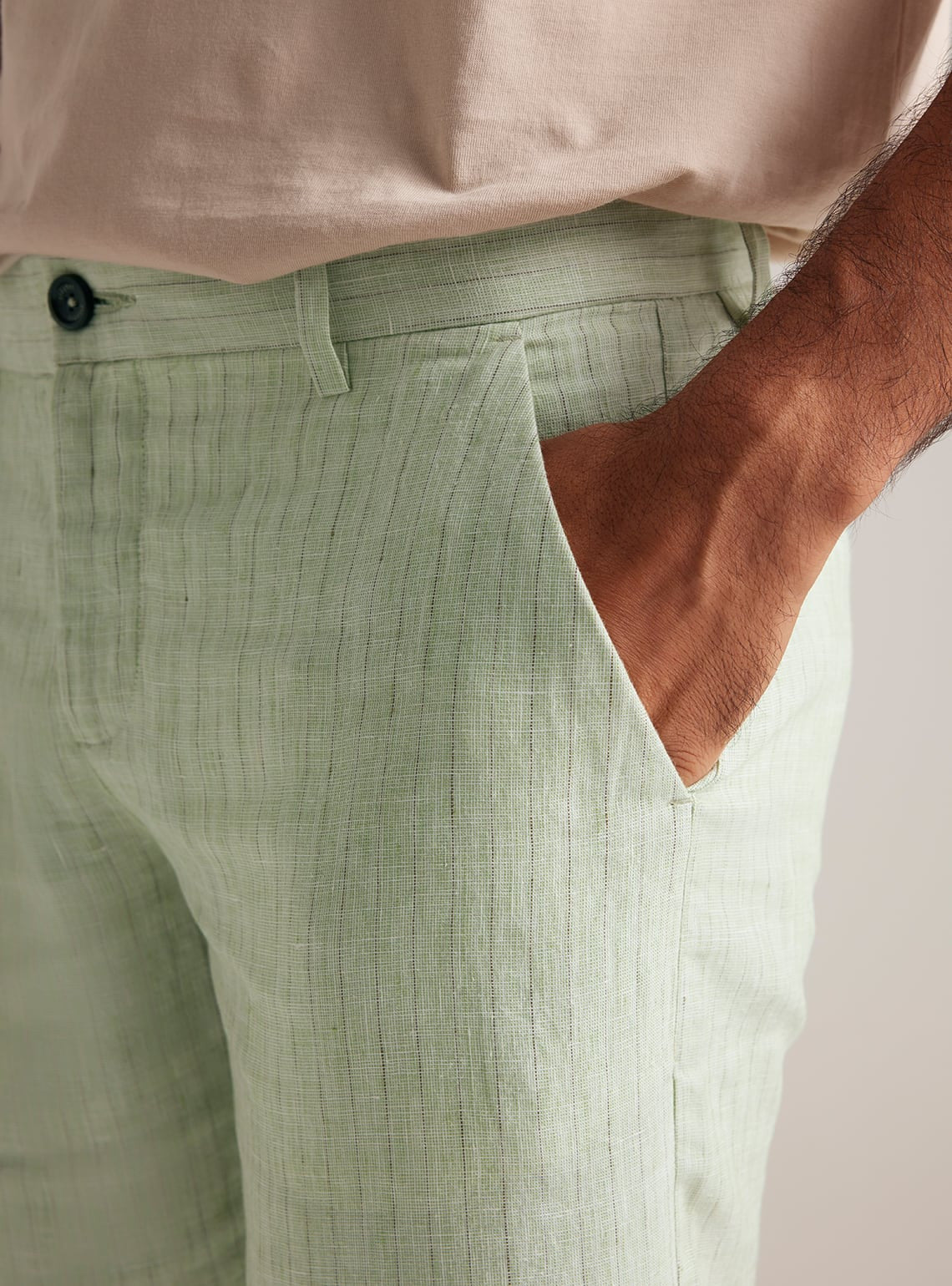 Presenting chinos that are good on you, & our planet. Crafted from one of Earth's friendliest fibres, European linen, which comes from Belgian flax, a supercrop that requires zero manual irrigation, is 100% bio-degradable & enriches the soil as it grows. Lightweight, naturally breathable & cool to touch, these timeless chinos are softer & more durable than regular linen.
