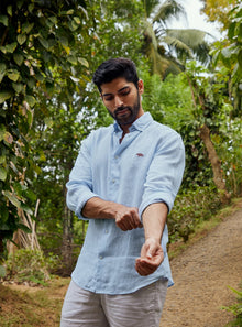 Timeless, soft to touch & naturally breathable. Our iconic linen shirts are back for another season. Crafted entirely from one of Earth's friendliest fibers, linen from European flax, a super crop that requires zero manual irrigation, is 100% bio-degradable & enriches the soil as it grows. Features a button-down collar & Rajan, the mark of Andamen.