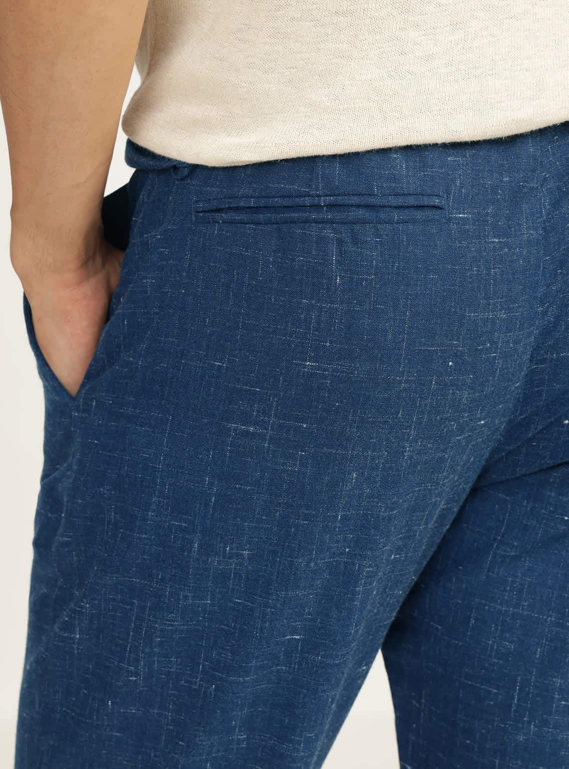 Crafted from a wool/polyester/linen blend, resulting in a fabric that is soft, durable & versatile.