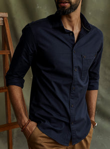 Named after the Chilika Wildlife Sanctuary in Odisha, renowned for being the largest by area, this Escape garment takes inspiration from the sanctuary's densely populated aquatic wildlife. This Navy Shirt is crafted from cotton in a twill weave, ensuring your garment is as comfortable as it is resilient. Field-tested & perfect for your safari expedition, it features pocket play.