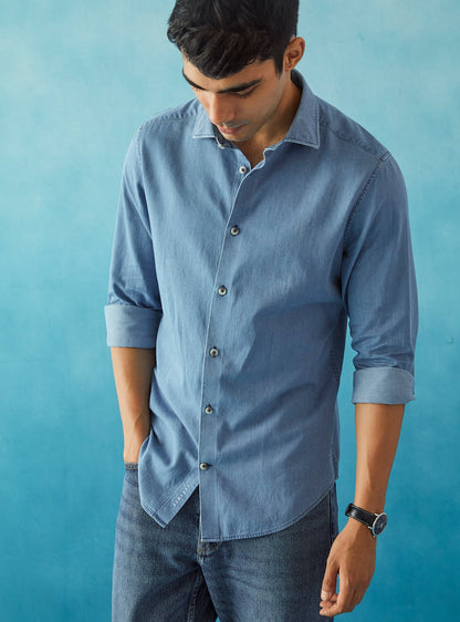 Presenting a timeless Indigo shirt, expertly woven from rich Indian cotton in a classic plain weave. This weave ensures durability & comfort. The Indigo build allows the shirt to age beautifully with you. Features a cutaway collar, & Rajan, the mark of Andamen.