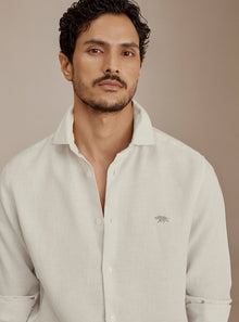 Presenting a shirt that's good on you, & our planet. Crafted from one of Earth's friendliest fibres, European linen, which comes from Belgian flax, a supercrop that requires zero manual irrigation, is 100% bio-degradable & enriches the soil as it grows. Lightweight, naturally breathable & cool to touch, this timeless shirt is softer & more durable than regular linen. Features a semi-cutaway collar.