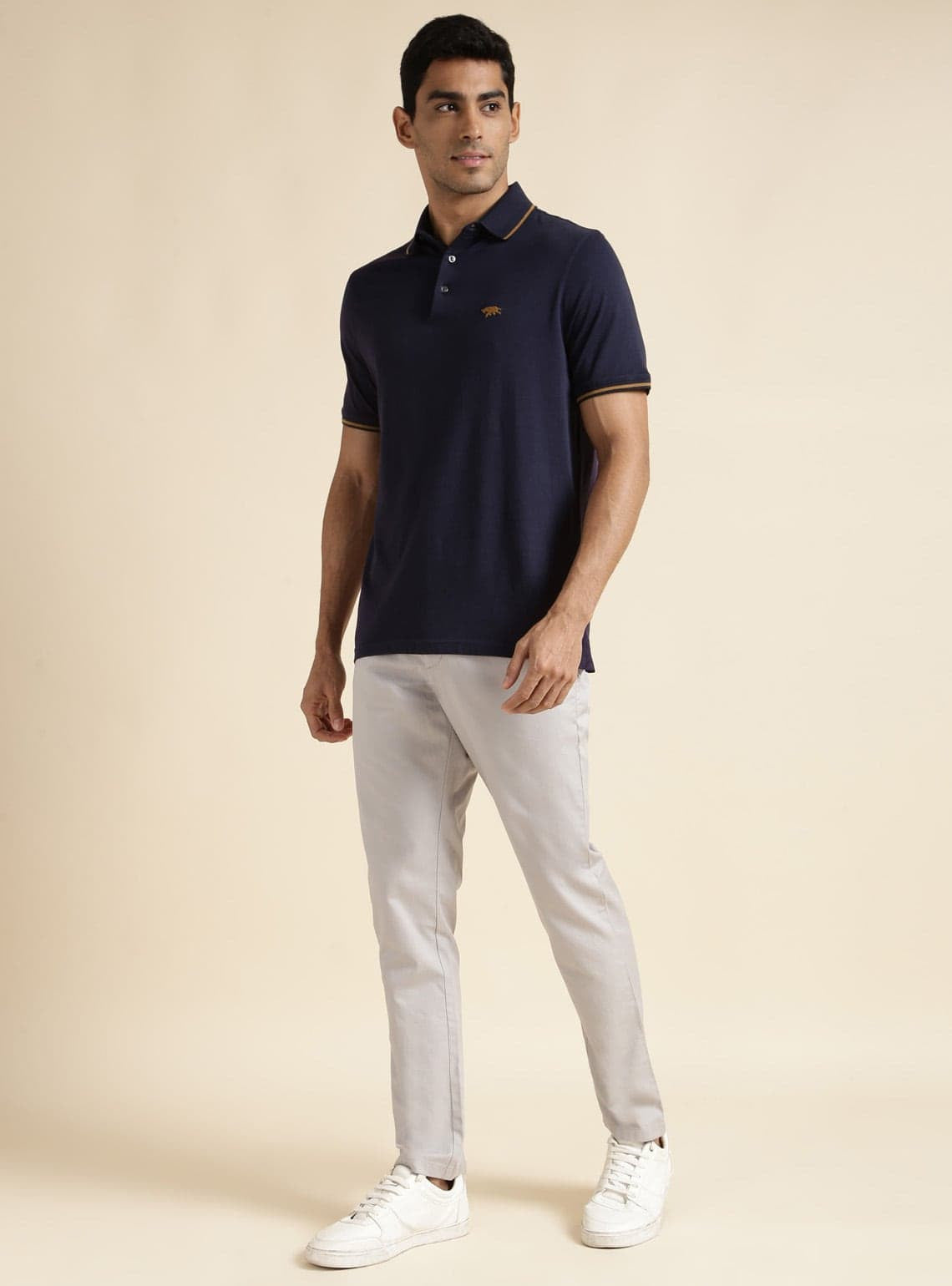 Versatile, comfortable, and built for you. These polos exude confidence as you wear them. They are made entirely from cotton in a single jersey structure, promising a combination that is both breathable and effortlessly stylish. Featuring a gold finish, tipping detail, & Rajan, the mark of Andamen.