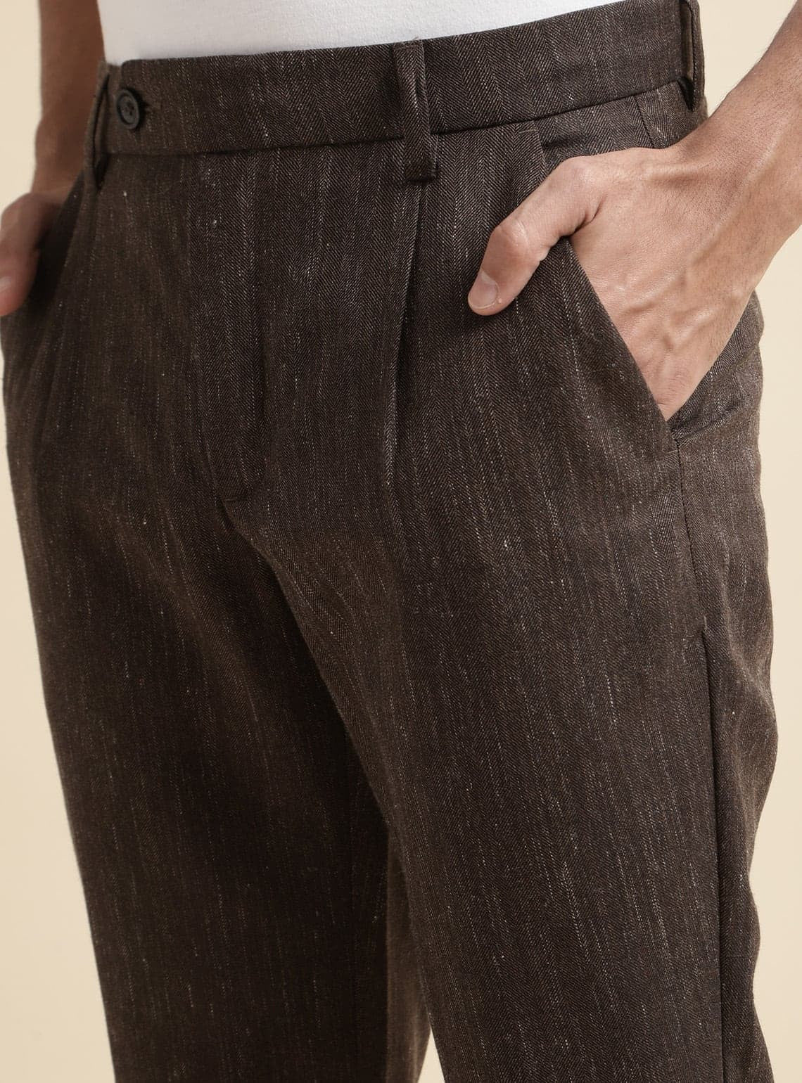 Versatile, comfortable, and built for you. Indulge in chinos made from a wool tri-blend in a herringbone weave, ensuring warmth and durability. They feature textural brilliance.