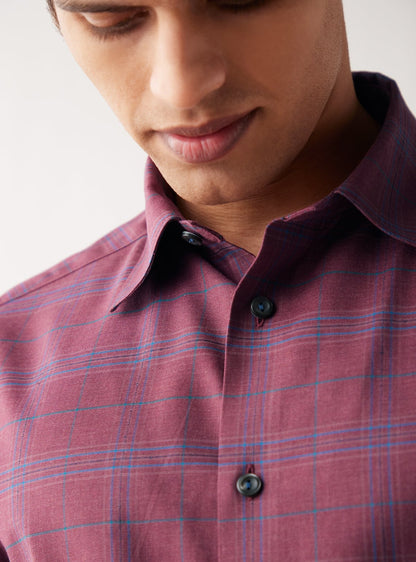 Presenting a semi-formal shirt from our signature line-up. Timeless & versatile, this garment is made from a Cotton-Polyester blend in a mid-weight fabric. The melange yarn results in a textured look, an enhanced color depth & vibrancy. Features an evening collar & Rajan, the mark of Andamen.