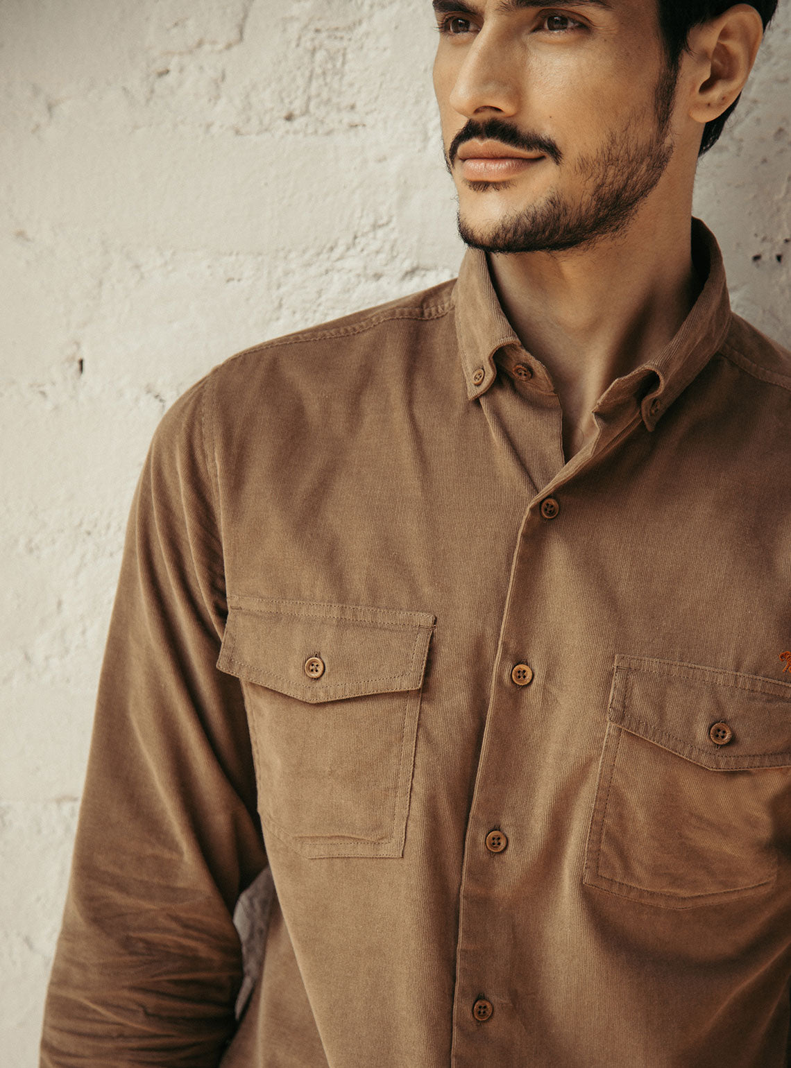 - Wooden button, Button down collar