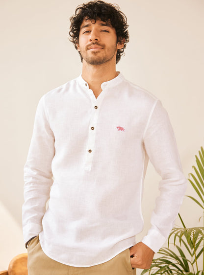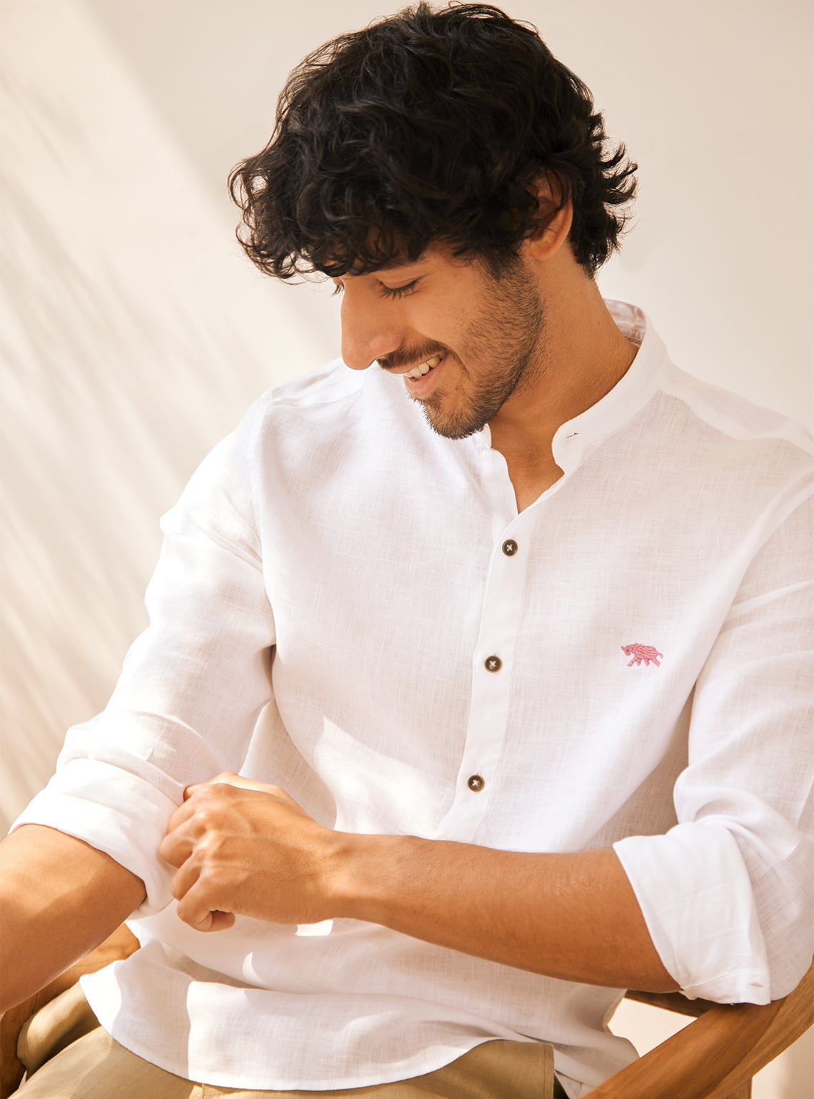 Timeless, soft to touch & naturally breathable. Our iconic linen shirts are back for another season. Crafted entirely from one of Earth's friendliest fibers, linen from European flax in a plain weave. Features a mandarin collar & Rajan, the mark of Andamen.