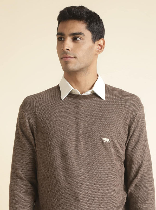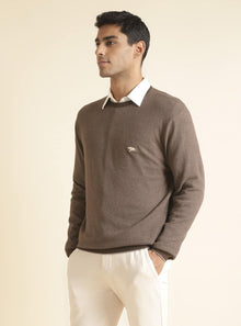 Comfortable, draped to perfection, & cosy in commotion. This full-sleeve pullover features in our Art of Leisure collection. Made entirely from cotton, this garment is relaxing and easy to wear. Features melange yarn, tipping detail, & Rajan, the mark of Andamen.