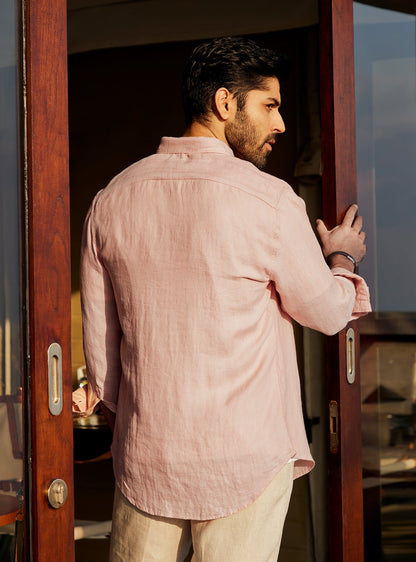 Timeless, soft to touch & naturally breathable. Our iconic linen shirts are back for another season. Crafted entirely from one of Earth's friendliest fibers, linen from European flax, a super crop that requires zero manual irrigation, is 100% bio-degradable & enriches the soil as it grows. Features a button-down collar & Rajan, the mark of Andamen.
