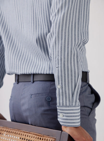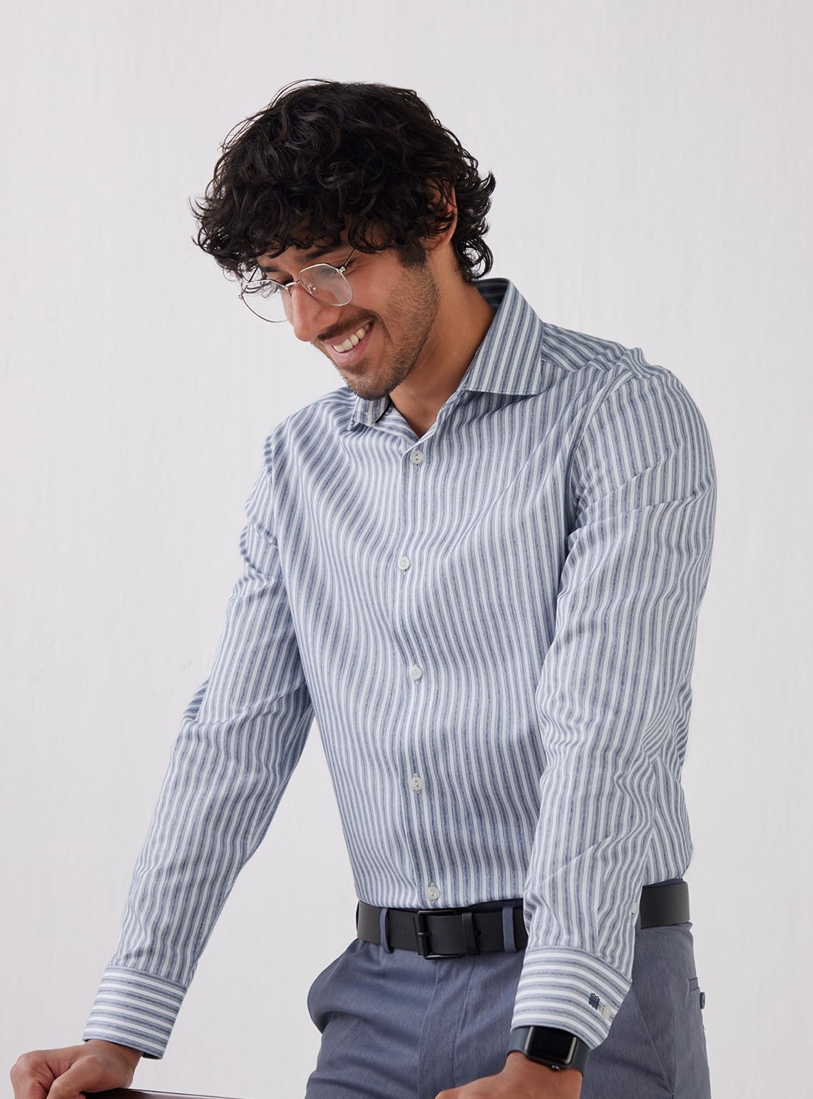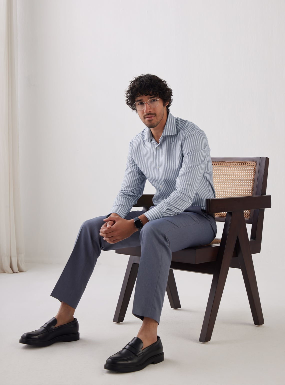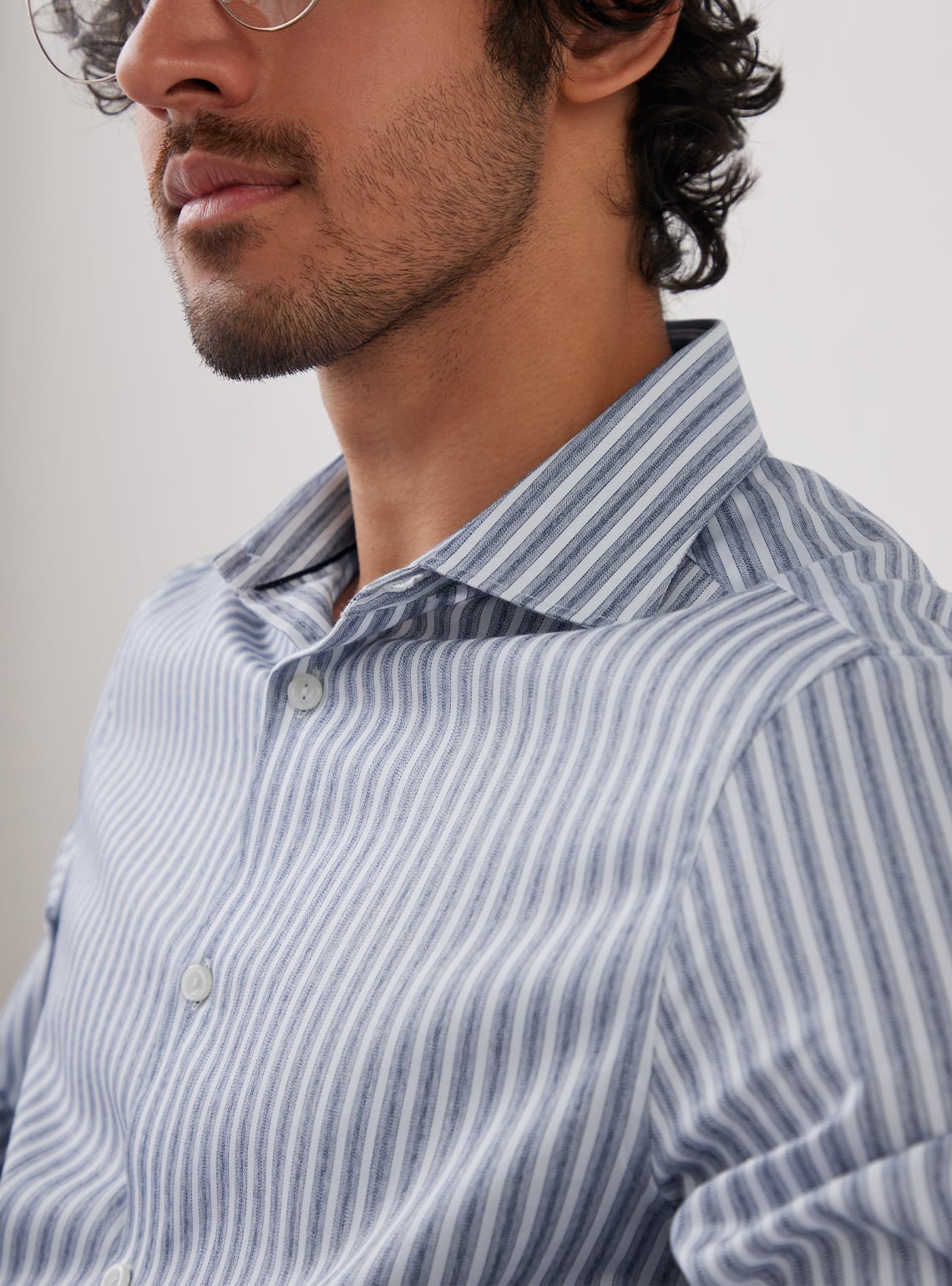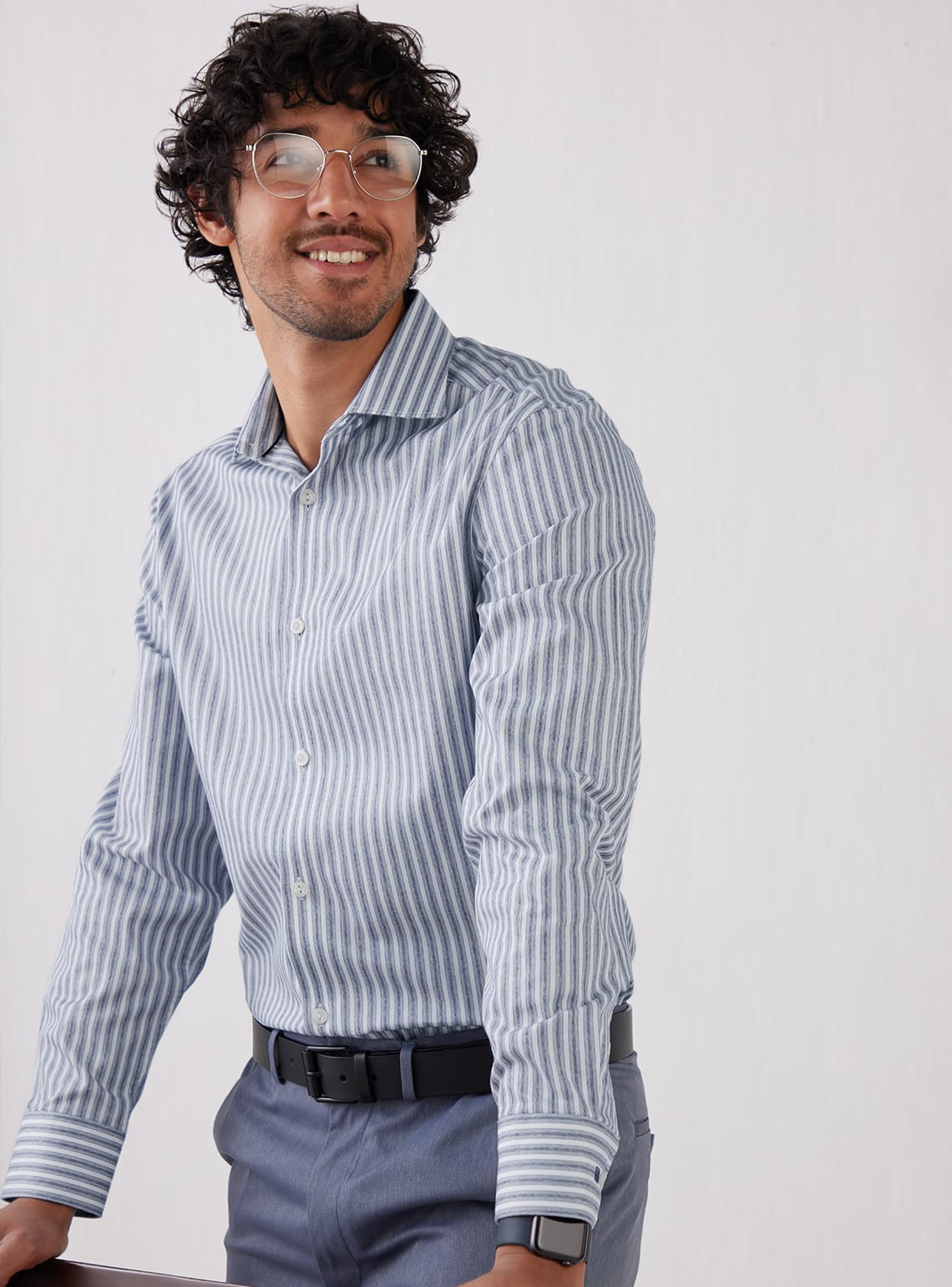 Presenting a timeless, refined & an elevated formal shirt from our Signature line-up. Made from the world's finest cotton, Egyptian Giza, in a timeless herringbone weave that makes the garment incredibly soft and adds good structure to it. Features a cutaway collar & Rajan, the mark of Andamen.