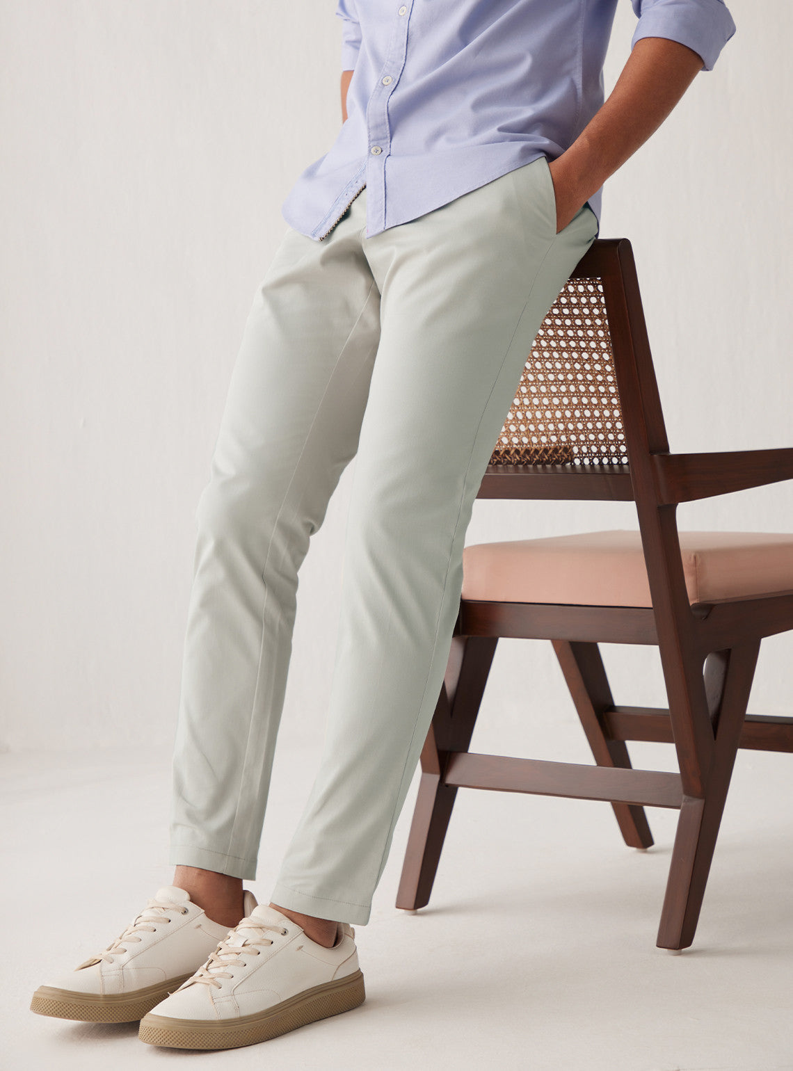 Presenting versatile & timeless chinos crafted for everyday comfort. Made entirely from a rich Indian Cotton & woven in a twill weave. The clean waist bands & signature embroidery detailing add a distinguished touch to these everyday trousers.