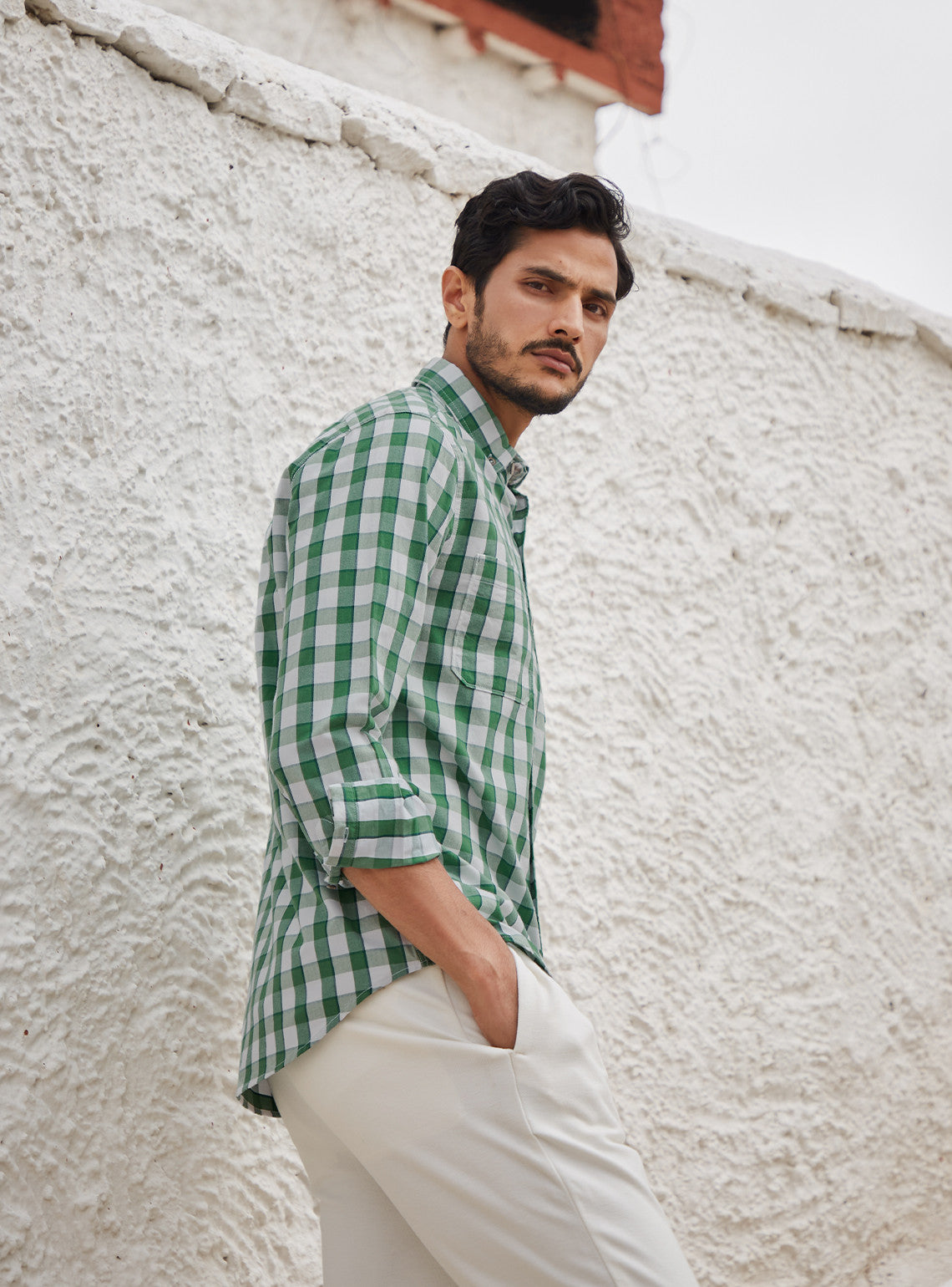 Presenting a timeless check shirt, for your casual & semi-casual days. Made from a rich Indian cotton, in a twill weave. Built in a medium weight fabric, this shirt features a button-down collar & Rajan, the mark of Andamen.