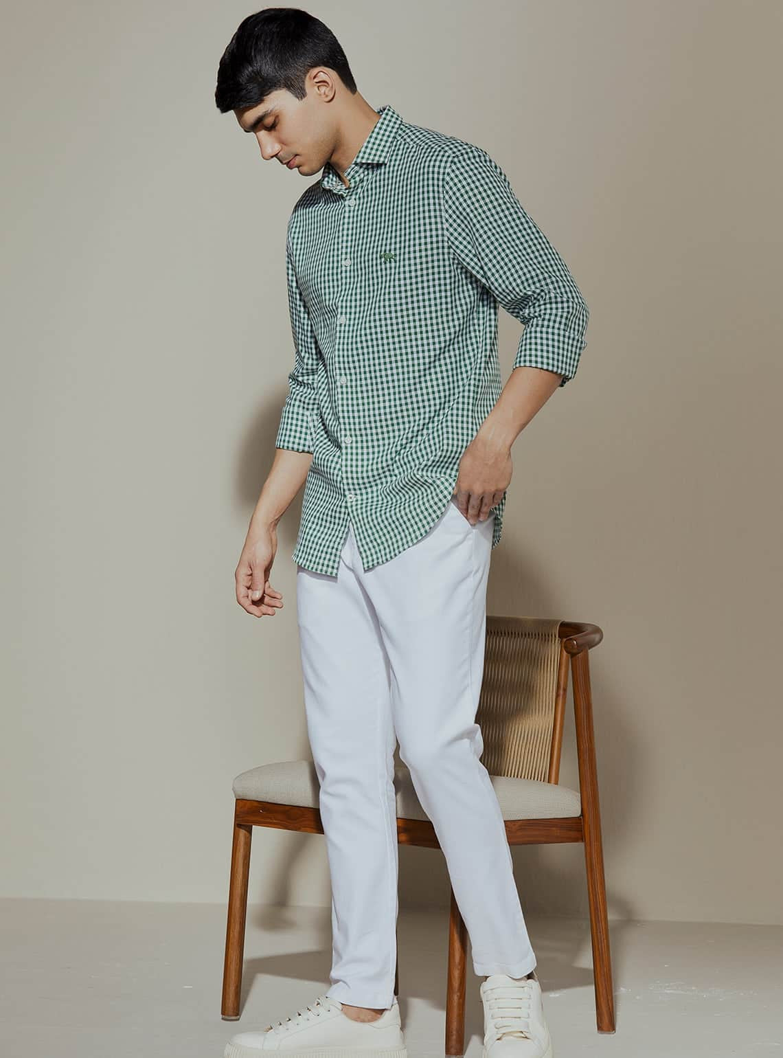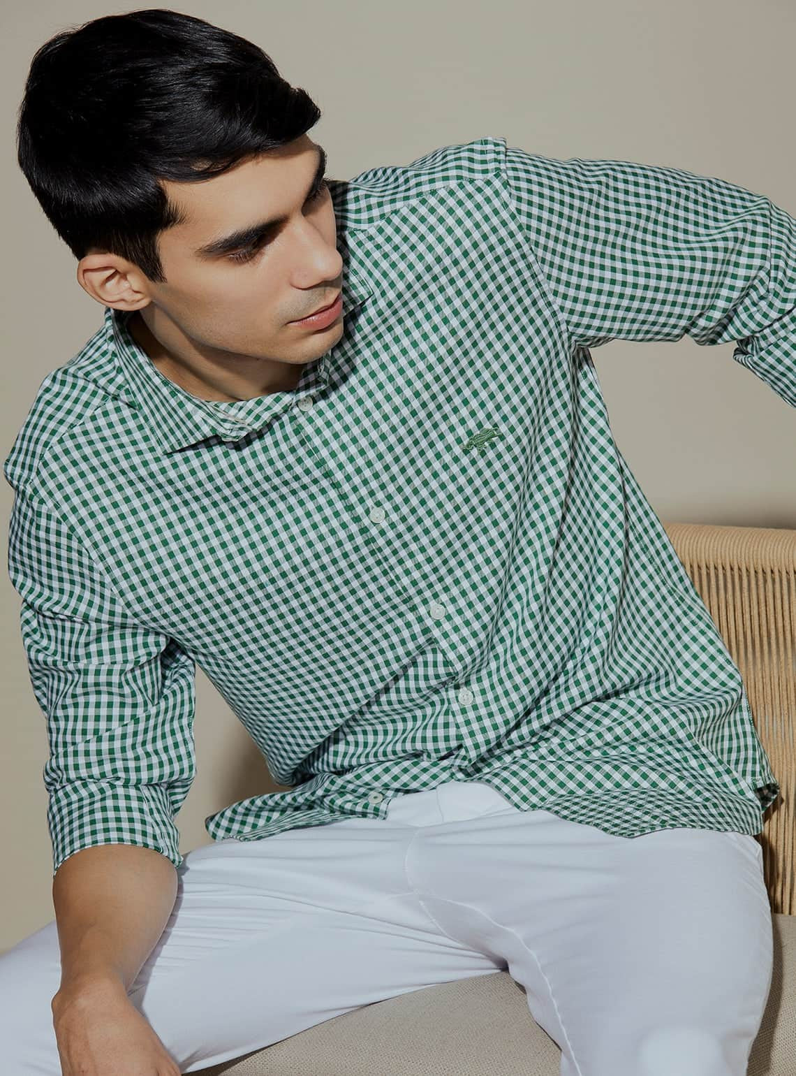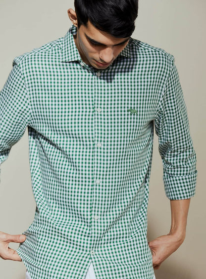 This shirt is meticulously crafted from a blend of cotton and bamboo in a twill weave, ensuring comfort and enhanced moisture-wicking. Designed in a full-sleeve silhouette, it not only provides sophistication but also features a cutaway collar, checks, & Rajan, the mark of Andamen.