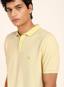 Presenting pristine and refined flat-knits. Made from rich Indian cotton in a mini honeycomb structure, ensuring breathability and longevity, with tipping detail.Preferable care: Machine wash cold, lay flat to dry and gentle cycle. Features a polo neck with Rajan, the mark of Andamen.