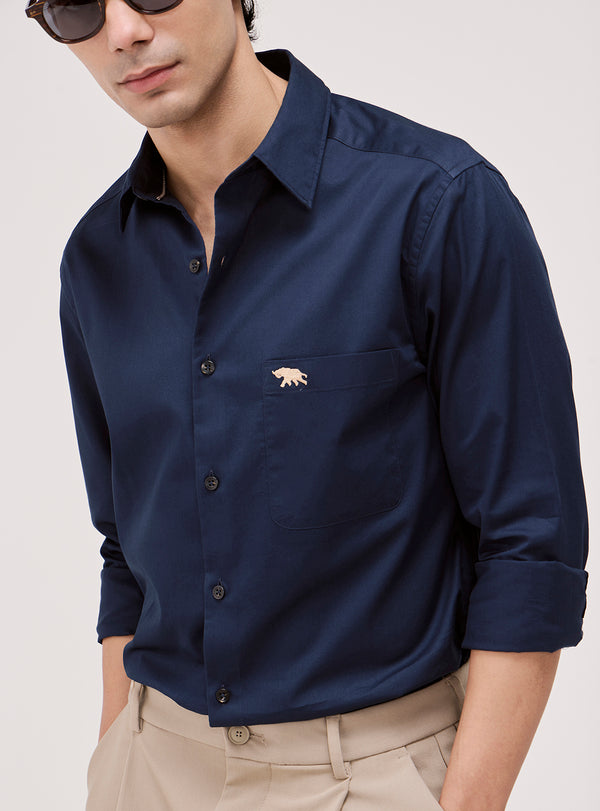 Liberty Navy Cotton Twill Shirt