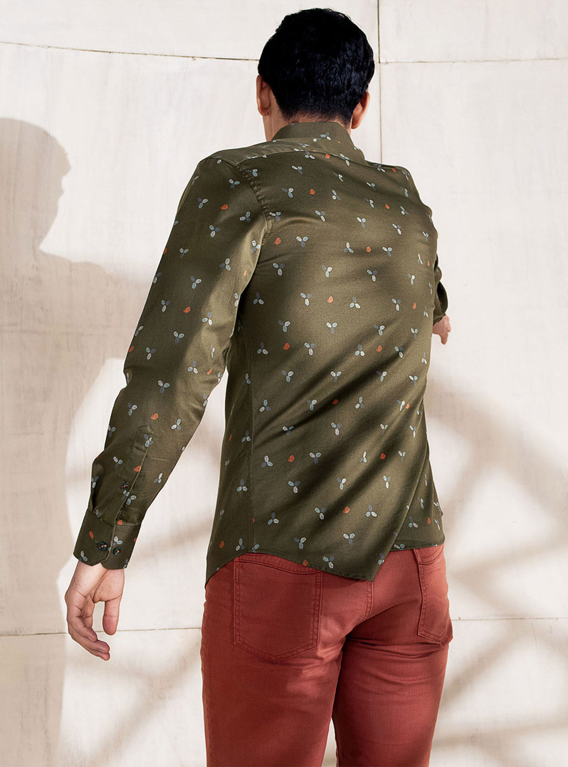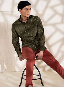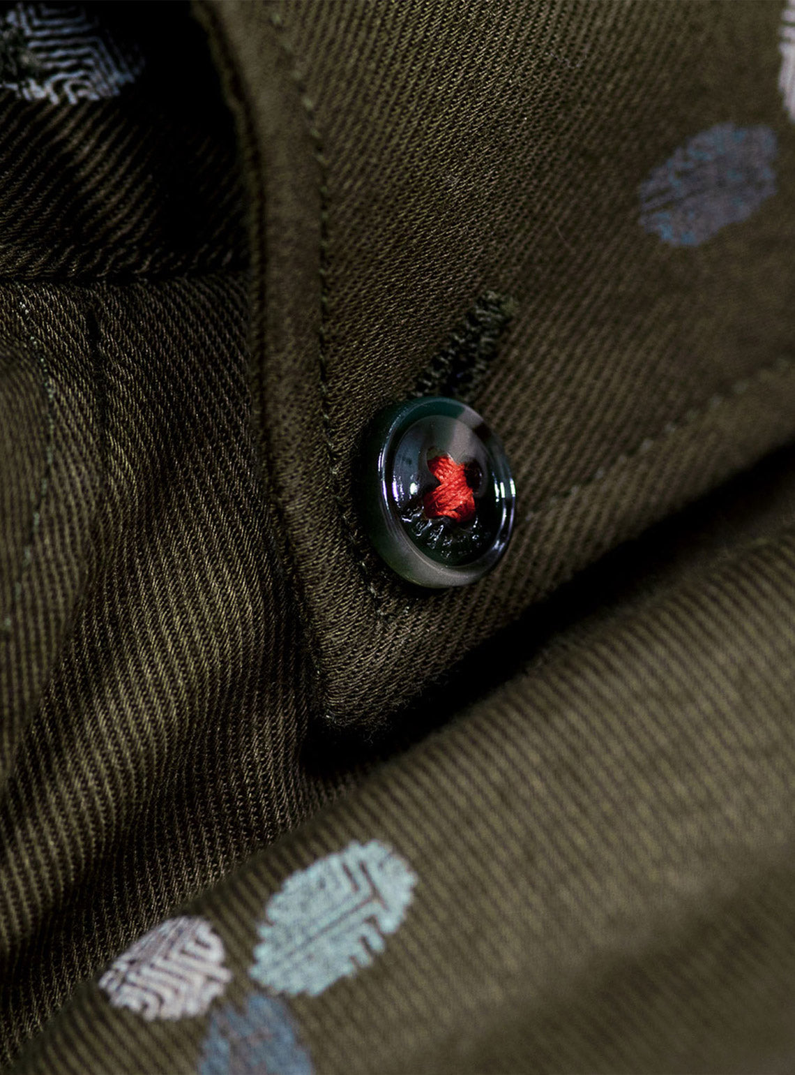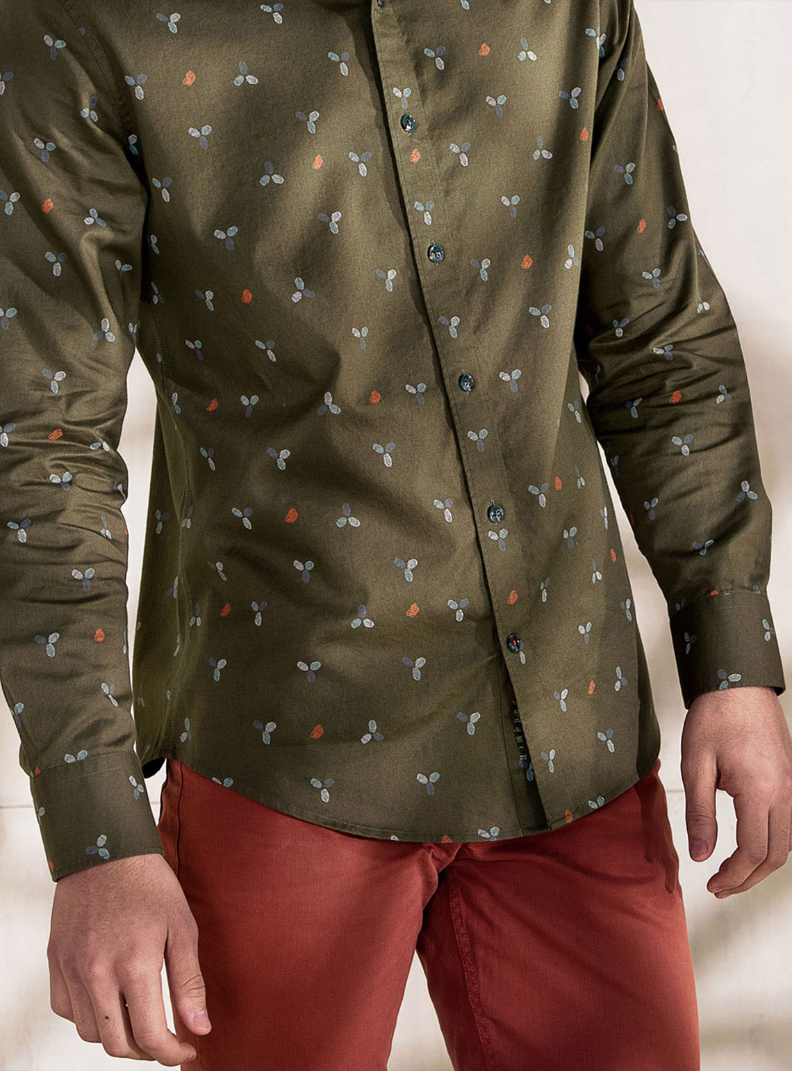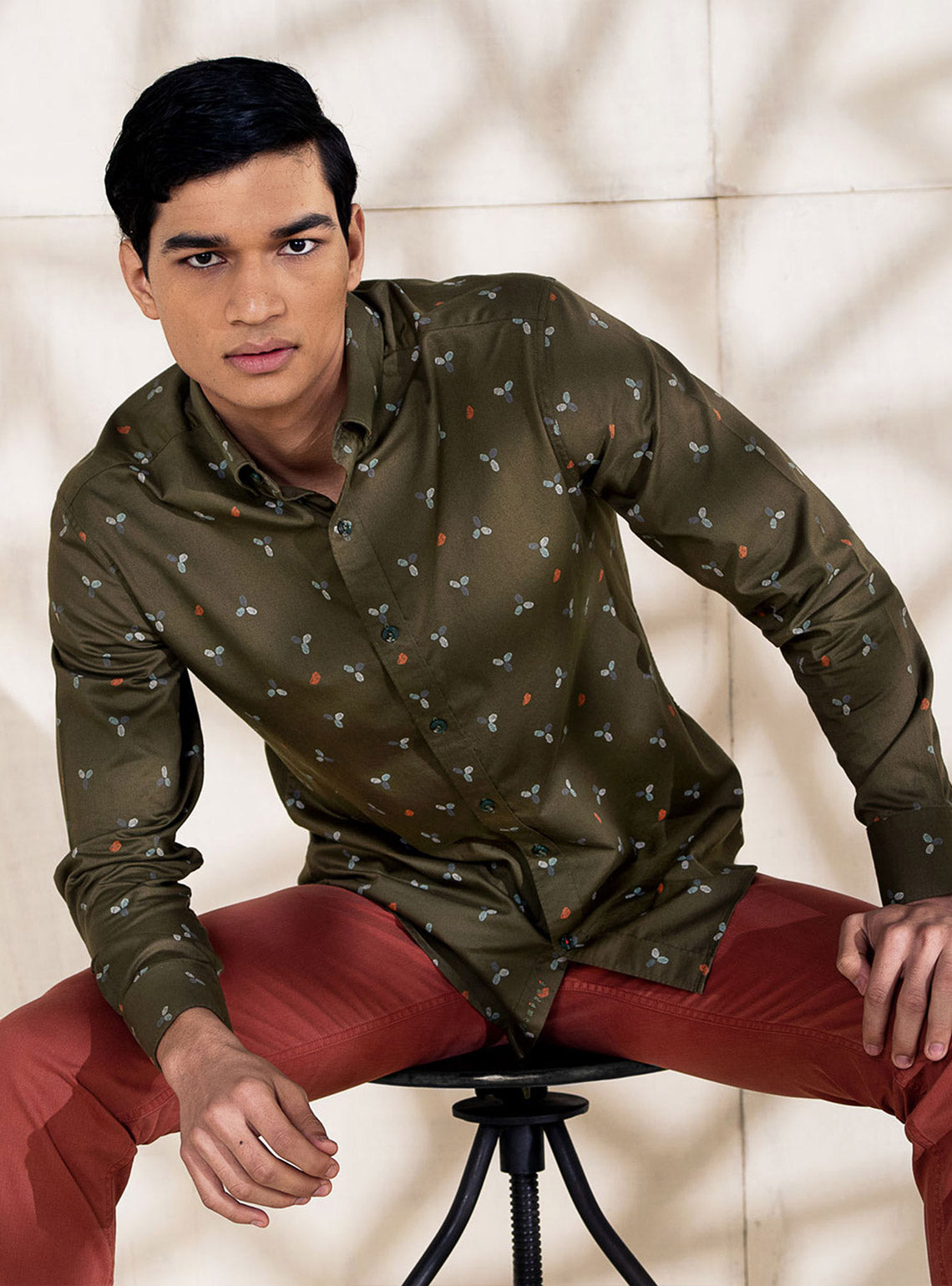 Our model is 5' 11", chest 40 and is wearing a Medium regular fit.